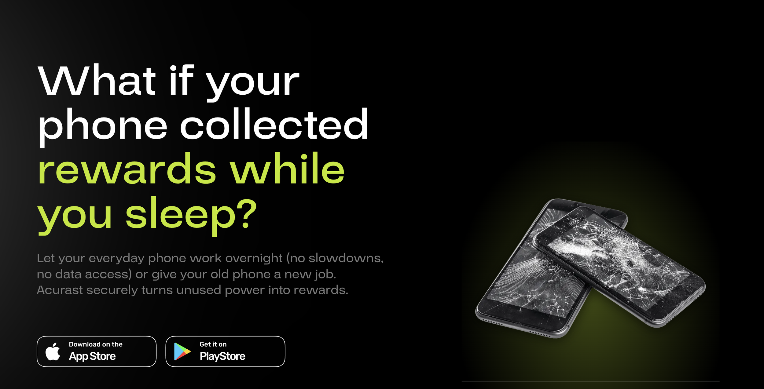 Let your everyday phone work overnight (no slowdowns, no data access) or give your old phone a new job. Acurast securely turns unused power into rewards.